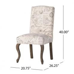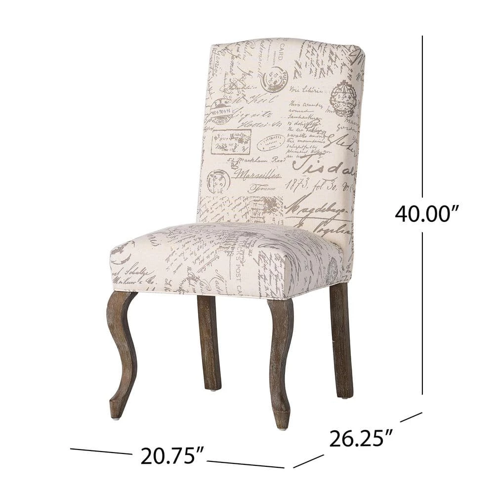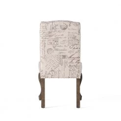 Add a splash of character to your living space with these whimsical dining room chairs. Suitable for both traditional or contemporary settings, these charming beige dining chairs feature a French handwritten script design on the cotton-linen fabric, imparting a quaint appeal to your decor. The hardwood frame offers strength and durability, ensuring that these gorgeous chairs provide beauty and comfort to your home for years to come.