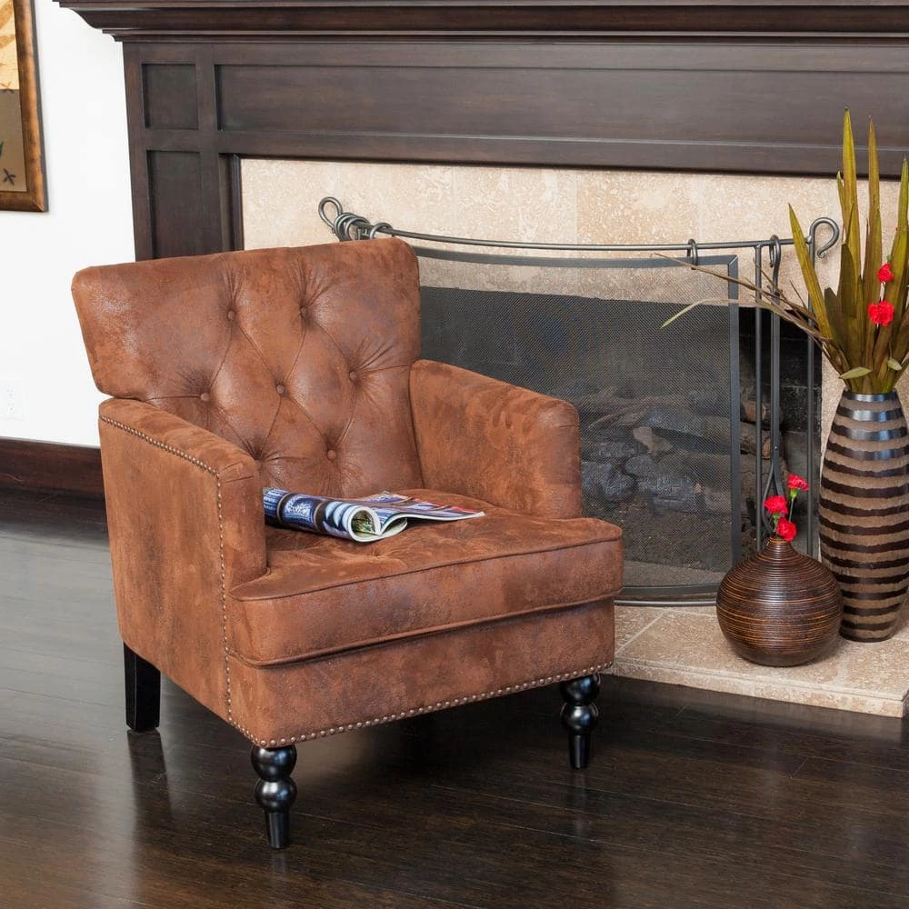 The Malone club chair features studs, tufting, and even carved wood legs that denote only the finest club chair elegance. It features wide-set seat that allows you to curl up and relax with your favorite book or movie. The extra plush cushion provides maximum comfort and will make this chair your favorite in the room.