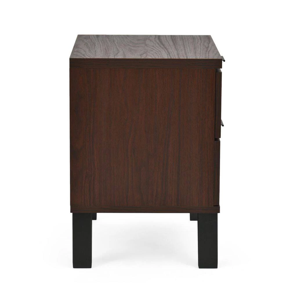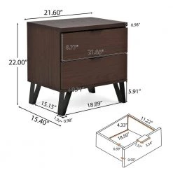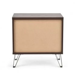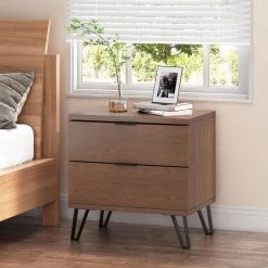 Offer your interior space a sophisticated accessory that brings plenty of convenient function without sacrificing its trendy aesthetics. Our nightstand offers two drawers for storing and organizing your clutter, making this the perfect companion to any room. This nightstand brings an outstanding modern industrial look to your home with its beautiful wood-like finish and flat hairpin legs. Offering your existing decor a wonderfully edgy design, this accessory has a perfect amount of versatile function and cozy aesthetics for your bedside.