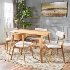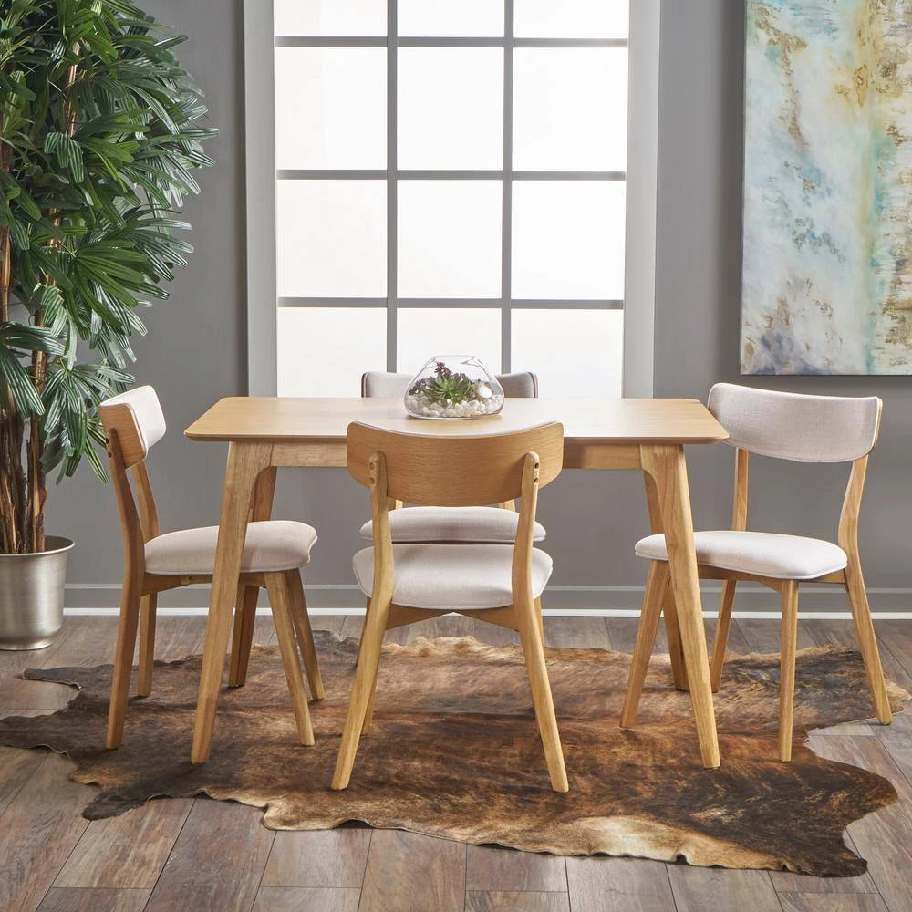 Add the perfect amount of modern to your dining room space. With matching wood finishes and contemporary styling, this set is a must have. The mid-century feel comes to life with both the chairs and the legs of the table. Featuring the ideal amount of modern touches, this set is sure to both please and satisfy in every way.