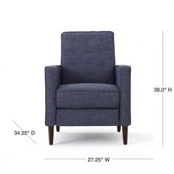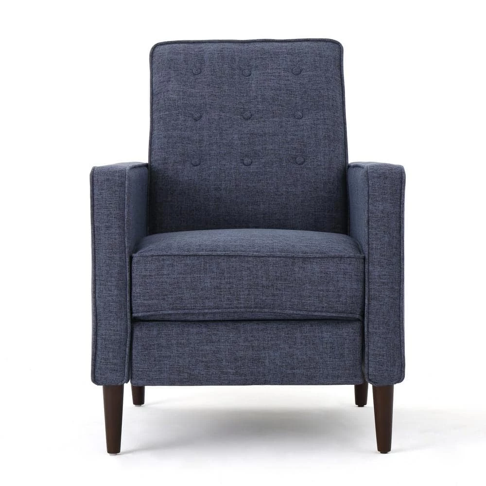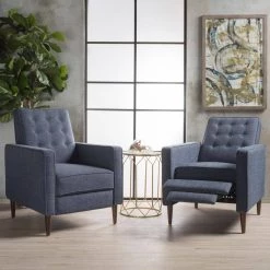 These mid-century modern recliners are a wonderful addition to any room in your home. Featuring clean lines and a smooth finish, no one will even know that these chairs are recliners until you are putting your feet up after a long day. Complete with a slightly tufted back and an extra padded cushion for maximum comfort, these recliners do it all. Everyone will be asking for a turn to relax in these recliner chairs of yours.