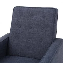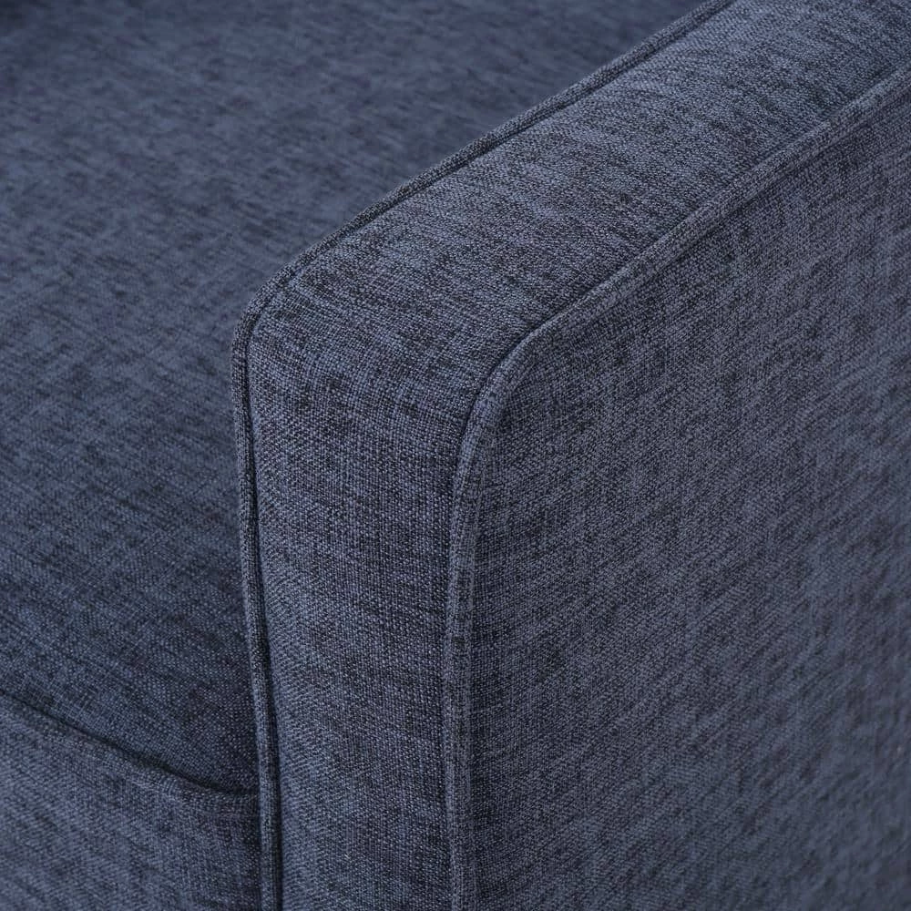 - Dark blue fabric upholstery adds a cool pop of color to rooms and spaces