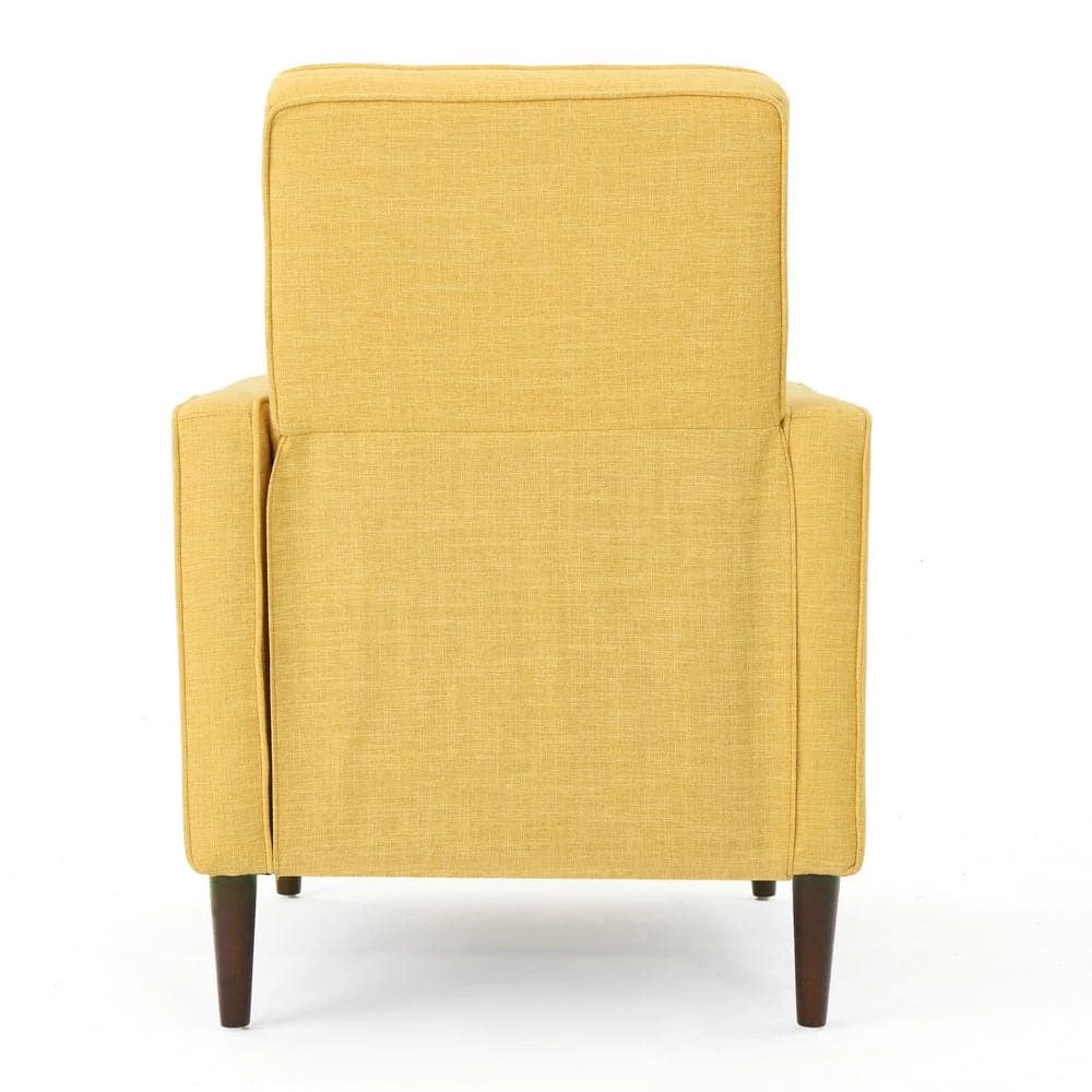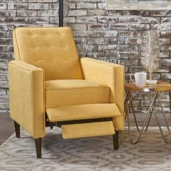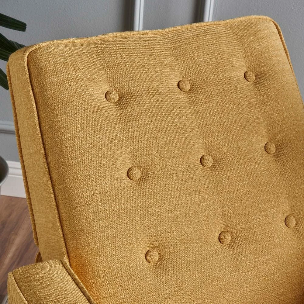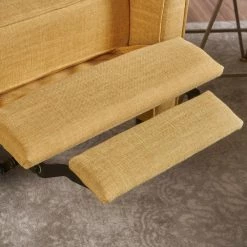 This classic muted yellow beige recliner will make a statement in any room of your home. The shape and height of the back with tufting details command attention while the armrests and cushioned seat allow for comfort. Perfect for entertaining or relaxing, this recliner will offer an intelligent design touch to your home.
