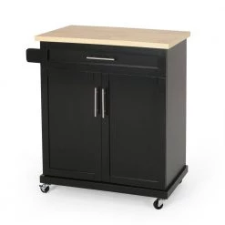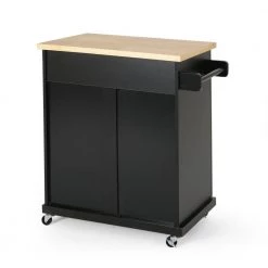 Offer your kitchen space an accessory that was built to meet all of your needs. From its 2-door cabinet to its incredible functionality, our kitchen cart offers ample organizational space to upgrade your living standard with a breeze. This piece offers a stunning contemporary style and convenient design that gives you plenty of options to effortlessly and efficiently store your kitchen accessories. Crafted with sturdy manufactured wood and rolling casters, our kitchen cart brings a fresh yet timeless look for you to utilize with ease.