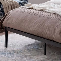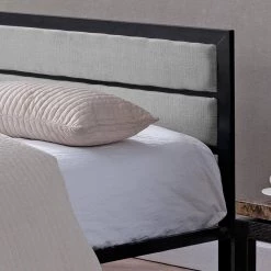 The Monarda queen-size iron bed frame is sleek, modern, and all-inclusive, ready to bear the weight of your mattress the second it is built. Its versatile style and streamlined appearance make it adaptable enough to fit into any style of decor. Featuring unique, upholstered accents at its head, this bed frame is a perfect fit for anybody looking to update the look of their sleeping space to a more contemporary standard.