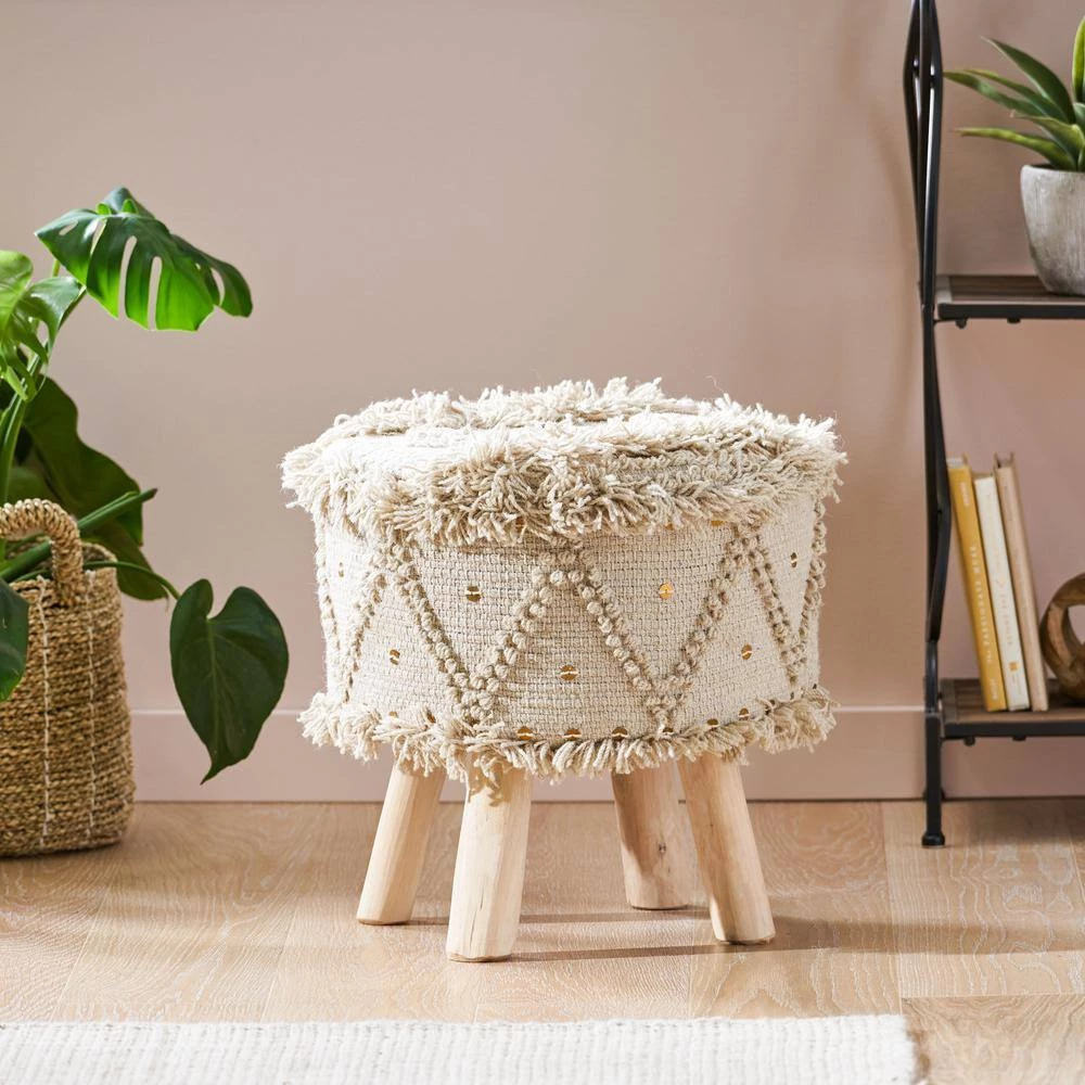 Everybody deserves a comfortable place to put their feet up with the help of a little stool that will impart an air of light-heartedness to your interior space. Meticulously rendered, this piece brings any home a carefree boho design that will instantly upgrade any interior decor. Whether you are using this as a footstool, an extra seat, or just as a decorative piece, this accessory is the perfect addition to any space. With its hand-woven top and sustainable eucalyptus wood base, this is a unique and attractive addition to your home.