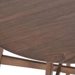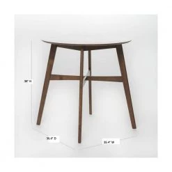 Grab this modern wooden bar table with for an additional stylish touch to your room. It features a natural walnut wood finish on its MDF and rubberwood body for a rustic charm. The round tabletop offers great display options for your photos or collectibles while the four straight legs make sure it stands upright. Perfect for smaller dining spaces, this table will become the focal point of your dining experience, even if all you use it for is extra serving space.