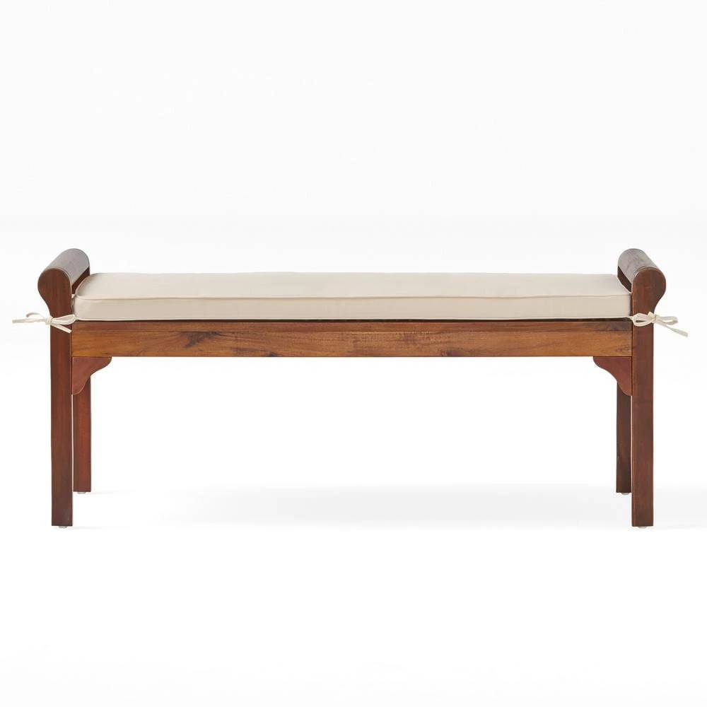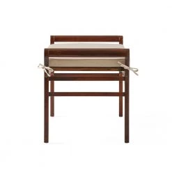 The Nelson Wood Bench with Cushion makes a great transitional piece for your home. With its natural dark tones and attention to detail shown in the cushion and ties on the seat this bench will complete any room you place it into. Enjoy this cushioned bench ottoman for years to come.