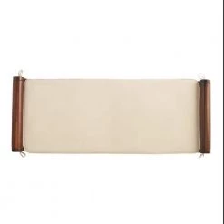 - Materials: acacia wood and fabric (polyester blend)