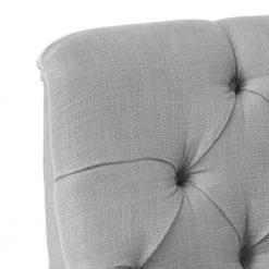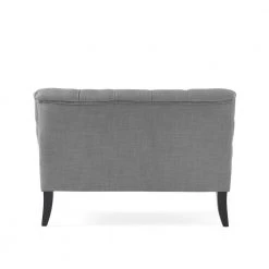 - Gray fabric upholstery blends well with any color scheme
