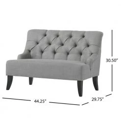 The Nicole loveseat offers comfortable seating with a design derived from French Colonialism. The curve of the backrest is mirrored in form by the chair legs, giving the piece a unique elemental twist. With tuft detailing along the backrest, the Nicole settee will add a refined and elegant touch to any room you place it in.