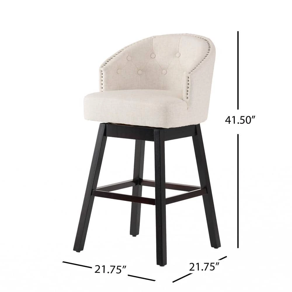 Whether pulled up to your kitchen island or bar, the Noble House Ogden Bar Stool adds an elegant feel to any space. This bar stool features a swivel mechanism, so you can move it around to speak to people sitting next to you. It has a classic style, providing you with a timeless piece of furniture. With a low back, this bar stool has a more minimalist and sleek design. Designed from wood, its frame is easy to maintain and creates a homey, visually appealing look. This stool features nailhead trim for a flash of metallic contrast and tasteful detailing. Built with a wide seats, these Noble House home furnishings ensure ultimate comfort.
