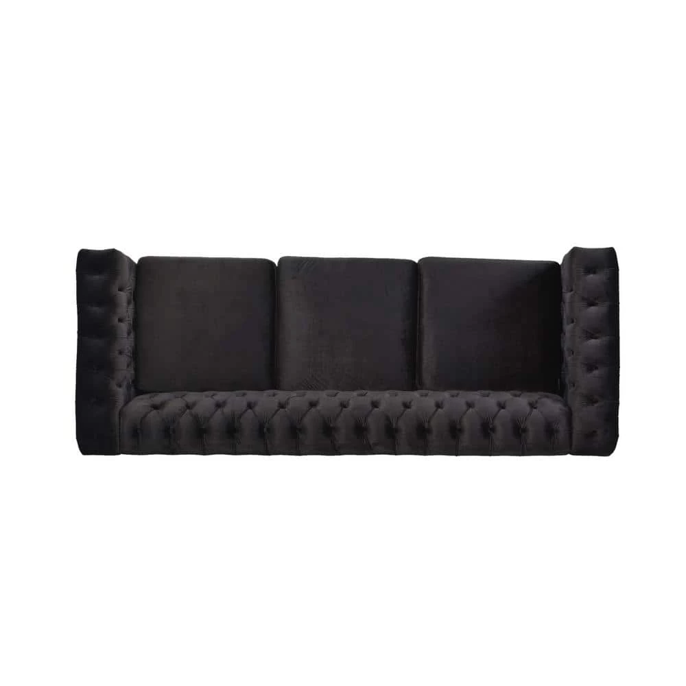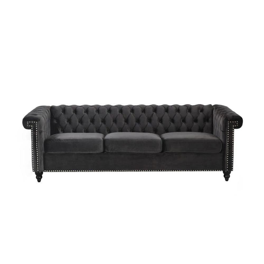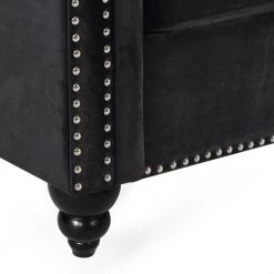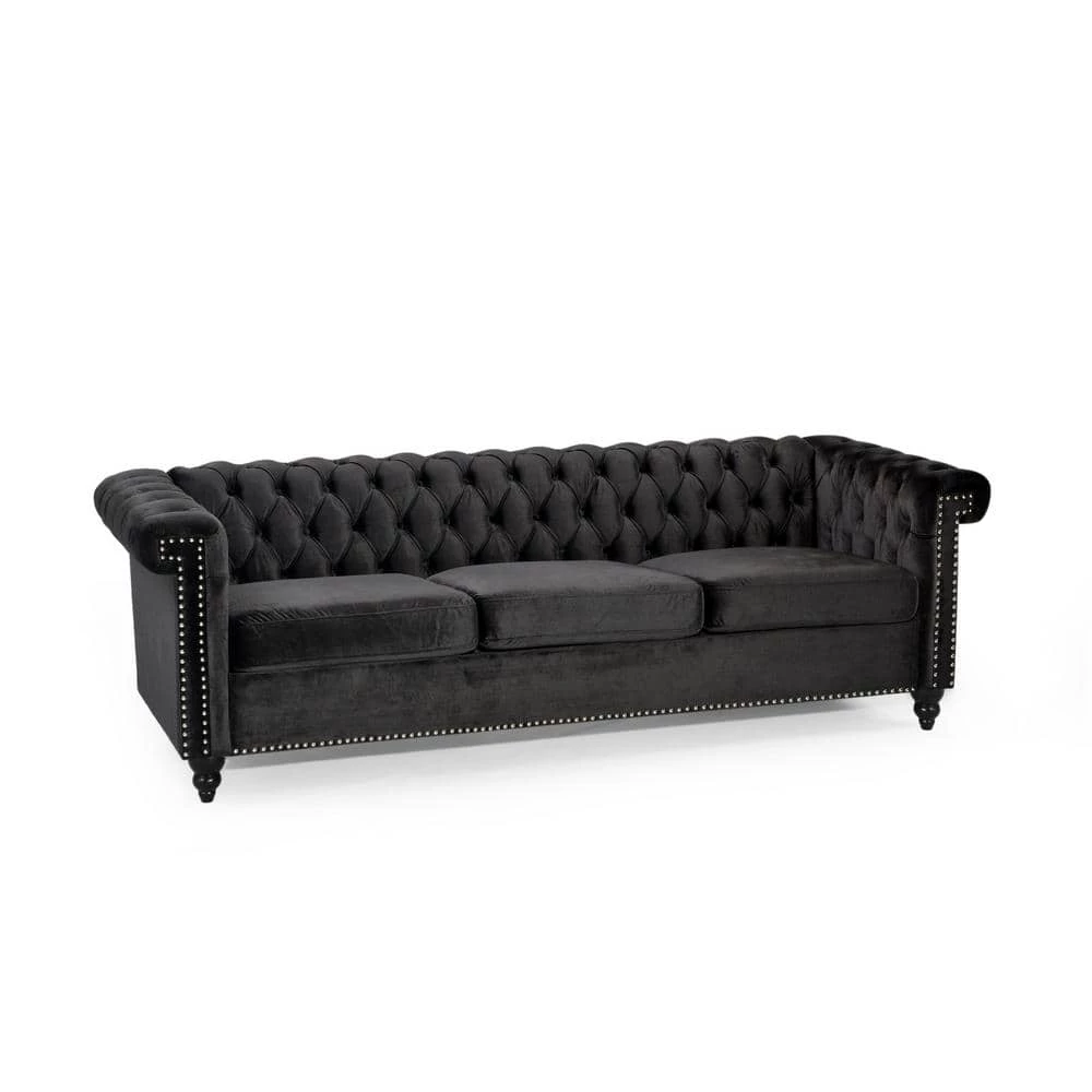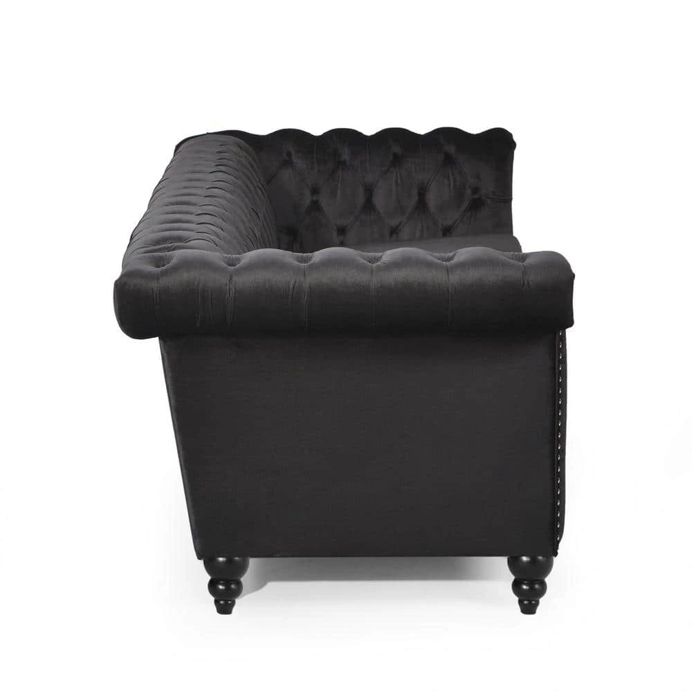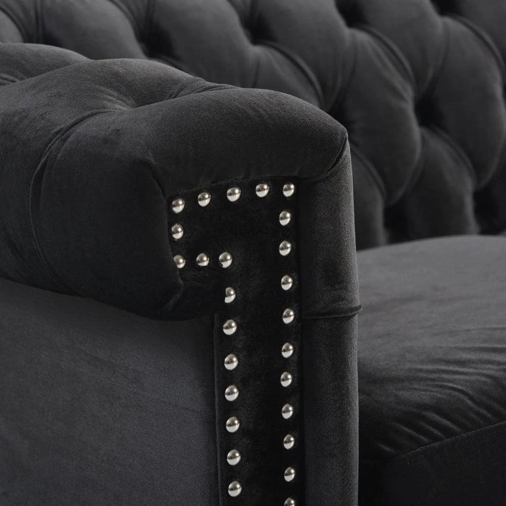 Bring home a timeless addition for your living room with our lasting Chesterfield style sofa. This lovely sofa is the ideal addition to any living room with its classic design and traditional elements such as deep button tufting, and nailhead accents. Featuring a low backrest and plush upholstery, this sofa stands as a streamlined statement piece that can change the whole flow of your living room, creating an open, clean space. Finished with beautifully turned legs, our sofa provides an elegant touch to any room.
