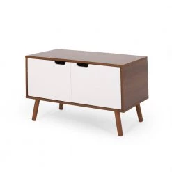 From living rooms to children’s bedrooms, our cabinet is perfect for adding extra storage to smaller spaces. Featuring a two-door cabinet space, our two-toned cabinet not only offers a clean look for your indoor decor but can also provide plenty of storage for any room in your home. This piece is finished with sturdy pine wood legs that offer a stunning mid-century modern atmosphere that will seamlessly complement your home. From bedrooms to hallways, this cabinet is the perfect addition to any house.
