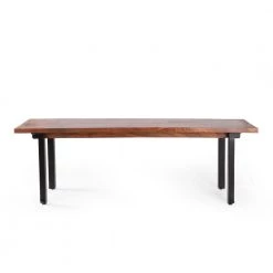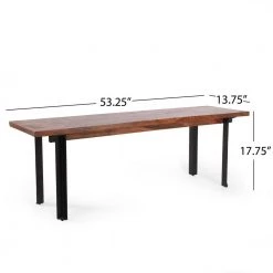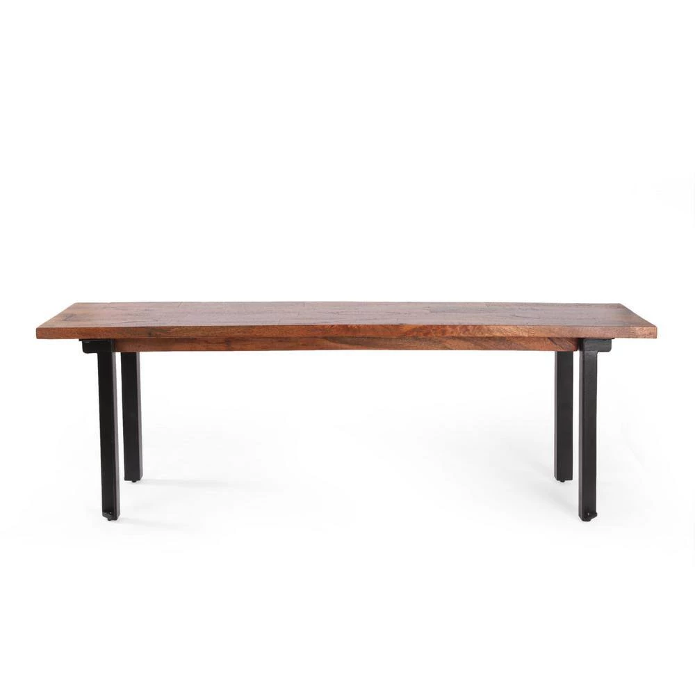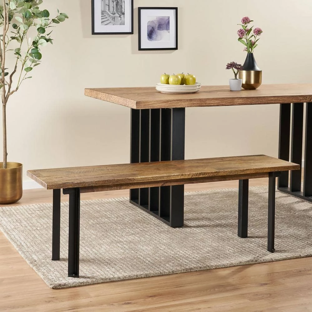 Bring a sleek and refined charm to every meal with a simple yet outstanding addition. Our inviting dining bench offers a modern industrial touch to your decor with its mango wood structure and sturdy iron legs that are sure to impress. This raw and edgy style is the perfect addition to your dining room, elevating any dining space with a minimalistic yet bold structure. With a sturdy, handcrafted build and impeccable design, your interior space will instantly transform into a masterpiece.