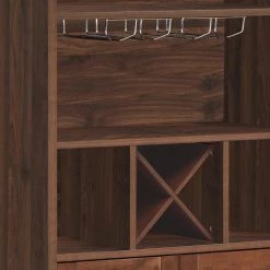 Entertain your guests or enjoy a relaxing night with the help of a balanced glass of wine. Featuring a wood look and X-shaped accent, this accessory brings a charming farmhouse atmosphere to your home. This cabinet is completed with plenty of storage space, giving you ample space to organize your items. This includes 4-bottle holders, 2-cubby shelves, 4-wine glass holders, and cabinet space. Blending seamlessly with your existing decor, this wine cabinet will bring out the best in your interior space.