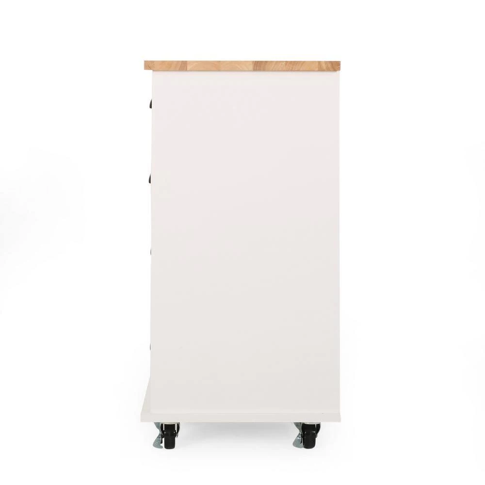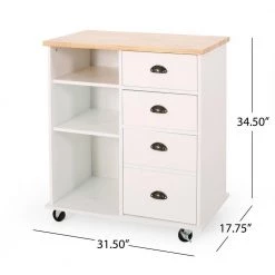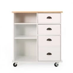 Whether you are preparing a batch of cookies or chopping vegetables for dinner, our cart will bring your kitchen to life. From its convenient drawers to its open shelving, our kitchen cart offers ample organizational space to upgrade your living standard with a breeze. This piece offers a stunning contemporary style and functional design that gives you plenty of options to effortlessly and efficiently store your kitchen accessories. Crafted with sturdy wood and rolling casters, our kitchen cart brings a fresh yet timeless look for all to enjoy.