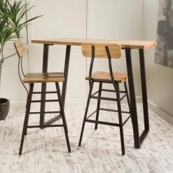 This laminated acacia wood bar set is ideal for anyone looking for a bar set. You don’t have to sacrifice utility for aesthetics. In this Complete with a set of chairs and a gorgeous natural stained finish, this set is ideal for that empty space in your home that is crying out for a bar set to finish off the decor.