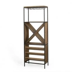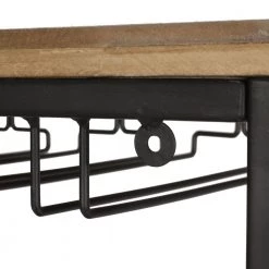 Whether you are an at-home sommelier or just into wine tasting, our wine rack has you covered. Our floor wine rack offers your home a sleek, sophisticated look that will hold your wine bottles and more with ease. Featuring space for fifteen bottles, a wine glass rack with five slots, and a cross-section to stack more bottles, this minimalistic accessory is any wine lover’s dream. With a chic metal frame contrasted by a gorgeous wood look, this wine rack offers a stunning modern industrial look for your interior space.