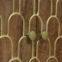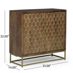 Add a flourishing accent to your home that also provides convenient function for your interior space. Featuring beautiful mango wood for a one-of-a-kind design, our two-door cabinet offers a contemporary look and a mid-century modern influence for your home with its gold fish scale design. This accessory is completed with storage space, giving you plenty of room to organize your items. With a minimalistic yet outstanding design, our cabinet will easily enhance your decor, bringing out the best of your interior space.