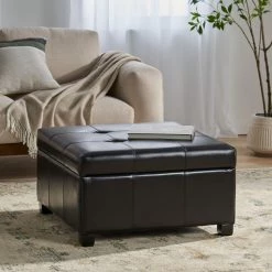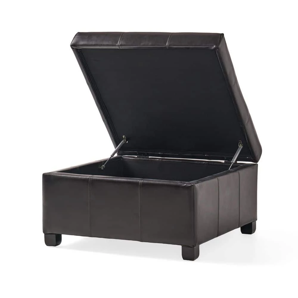 The Richmond Ottoman is the perfect choice for accenting your existing furniture. Featuring a classic design, this ottoman is great for creating an appearance that is warm and inviting. It has wooden materials and is upholstered with leather, providing you with luxury and uncompromised comfort. Built with a storage area, it is excellent for organizing your towels, linens, and other household items.