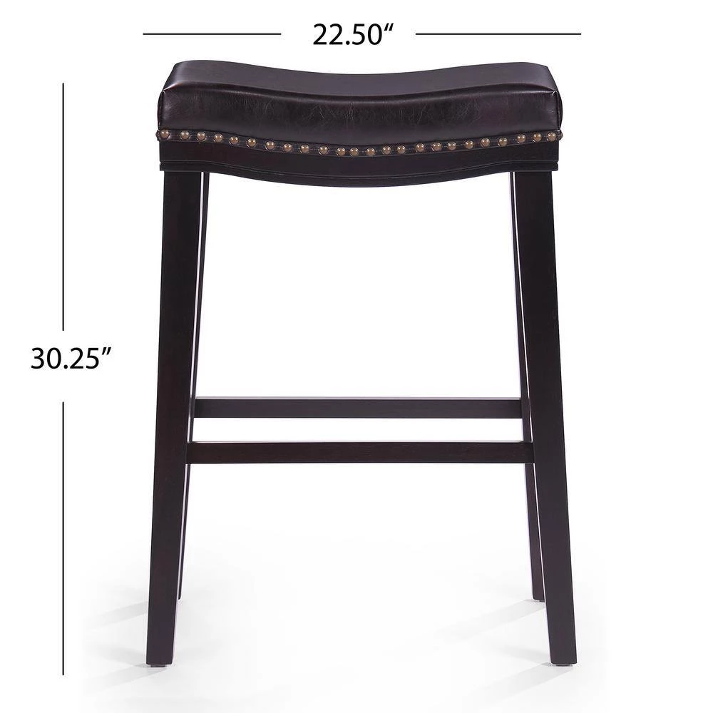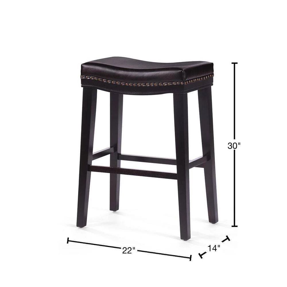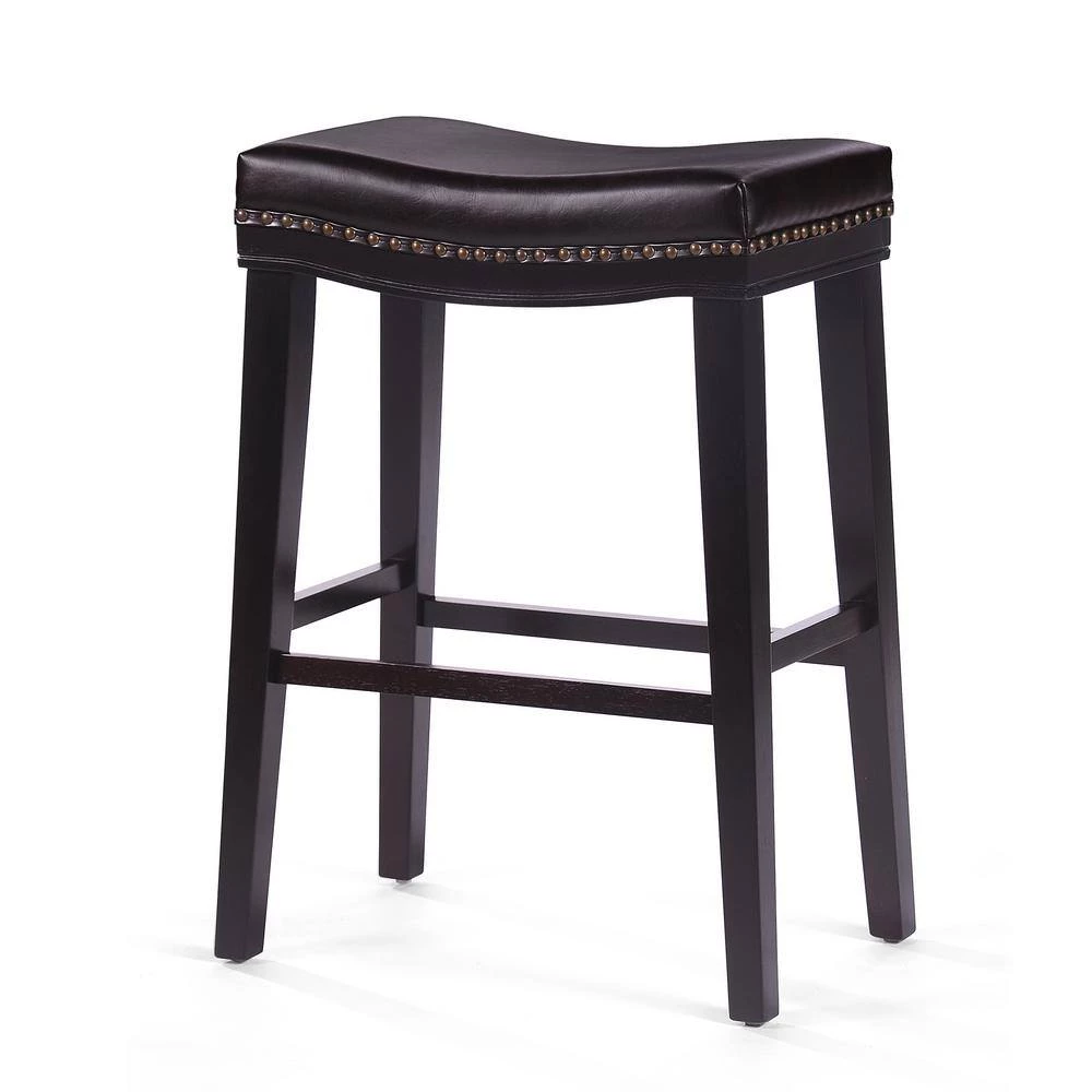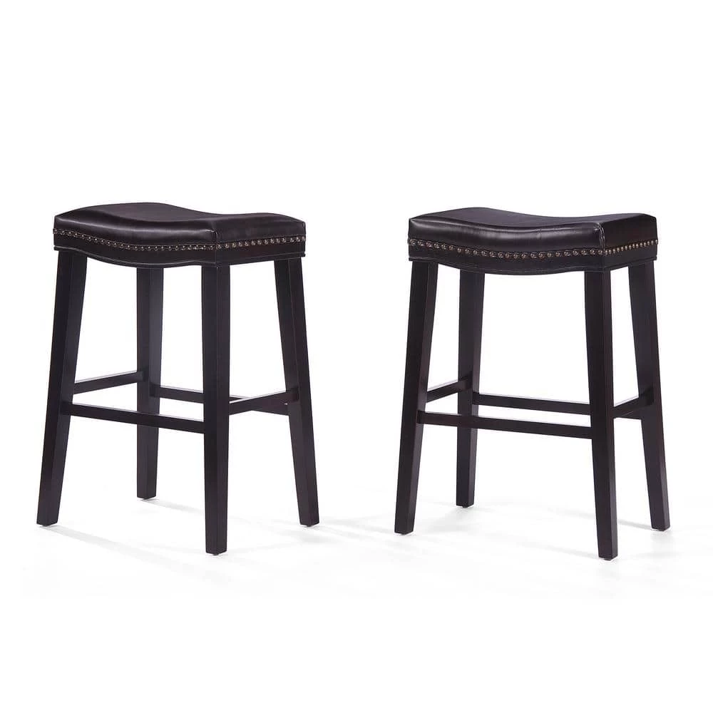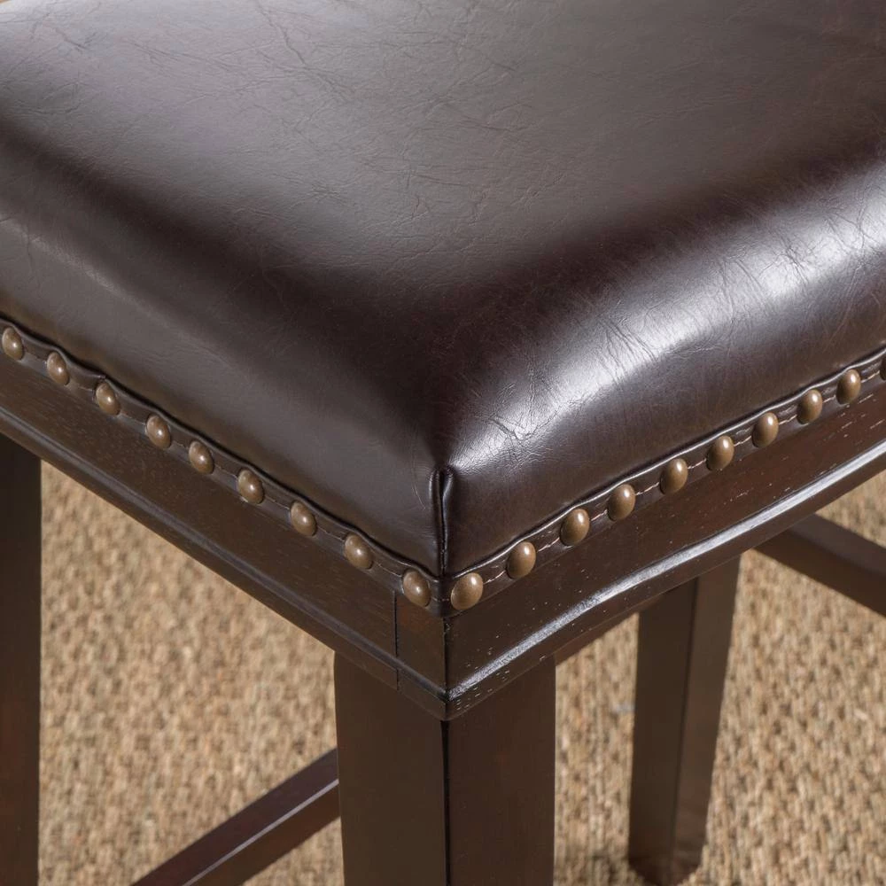 These saddle-shaped stools are a great addition to any room. Featuring a stud rimmed seat with extra cushioning for maximum comfort, these stools are sure to impress. These stools come complete with foot rails for you to rest your feet on while seated. You cant go wrong adding these stools to your furniture collection at home.