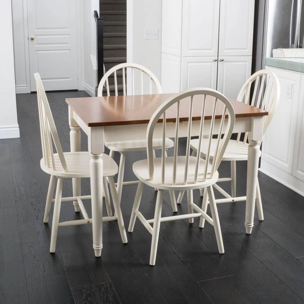 The Roseville Dining Set gives you that elegant look for any dining area, while at the same time offering an updated farmhouse feel. The dark oak table top and antique white legs gives a contrasting look to this set, making it a great focal point. Capable of seating up to four persons, this dining set is perfect for your everyday family dinner.