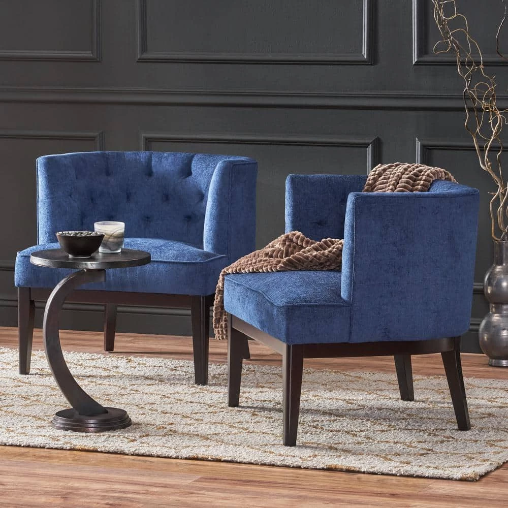 Drawing from tasteful elegance and contemporary charm, fill your interior space with impressive seating. Featuring a classic design of rich sophistication, our accent chair set is sure to delight in both style and function. With tub seating built atop a beautiful wood frame for a sturdy build, each barrel chair provides reliable stability while its plush upholstery offers outstanding comfort. Finished with refined tufted diamond stitching, our chair set will effortlessly upgrade any existing decor, making it the perfect addition to any home.