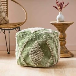 Our pouf brings home the embodiment of luxurious comfort and casual style to your decor. Featuring a tufted geometric design, this pouf offers your indoor space an uplifting atmosphere with a finishing hand-crafted touch. Whether this is used as a footrest, casual seating, a side table, or purely for decorative purposes this piece can be used in a multitude of ways. Seamlessly blending into any arrangement with its understated design, this pouf is not only one-of-a-kind but is also resilient, making this the perfect indoor accessory.;