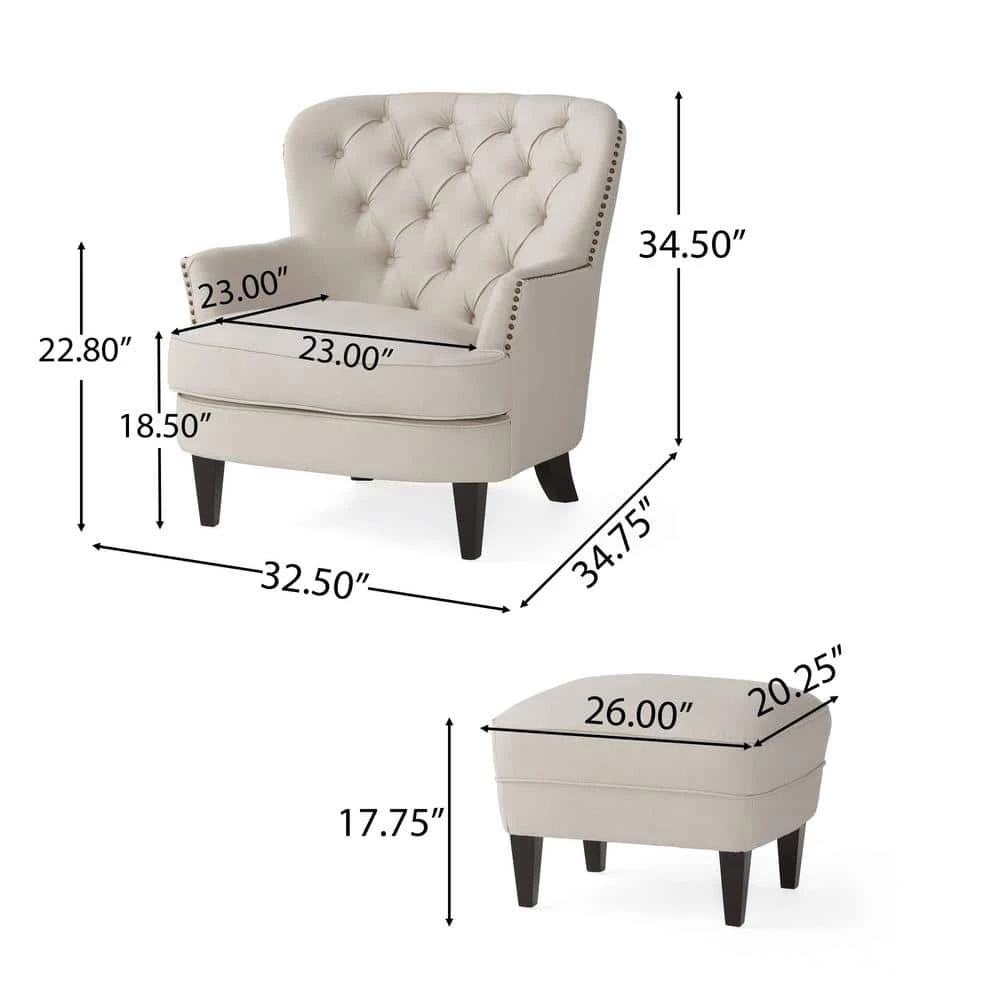 - Ottoman Dimensions: 26 in. Width x 20.25 in. Depth x 17.75 in. Height