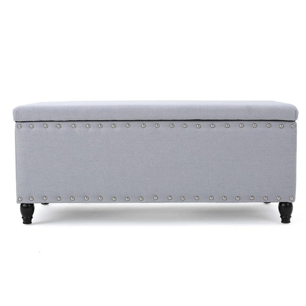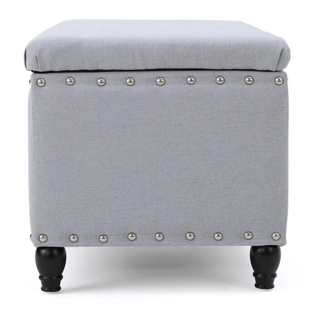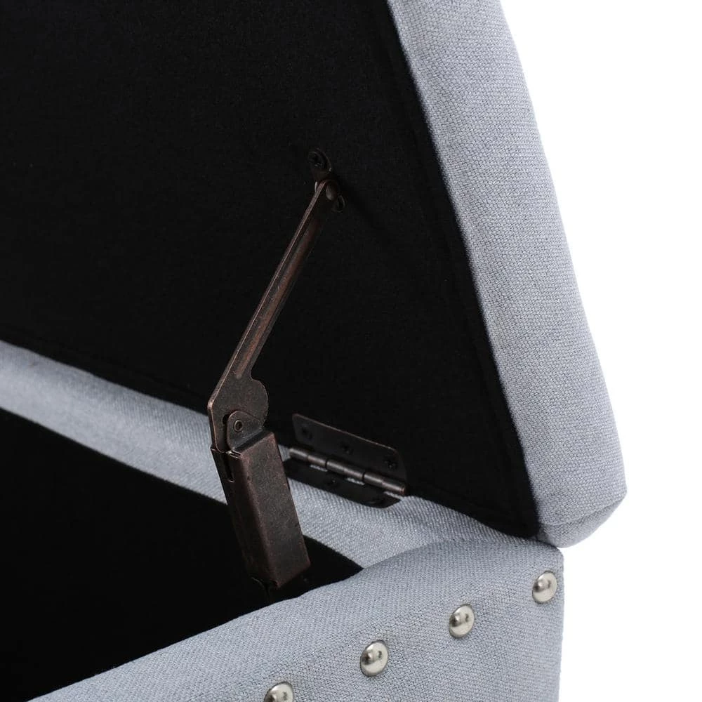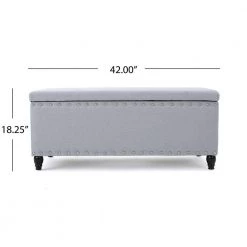 This storage ottoman bench is as plain as it is wonderful. Not only does it feature extra storage for your home, it also boasts a gorgeous stud work around the entire piece for a charming appeal. With traditional legs to complement most decor, this bench is perfect for any room in your home.