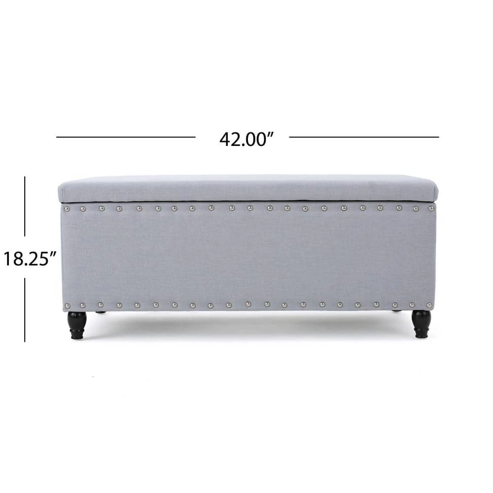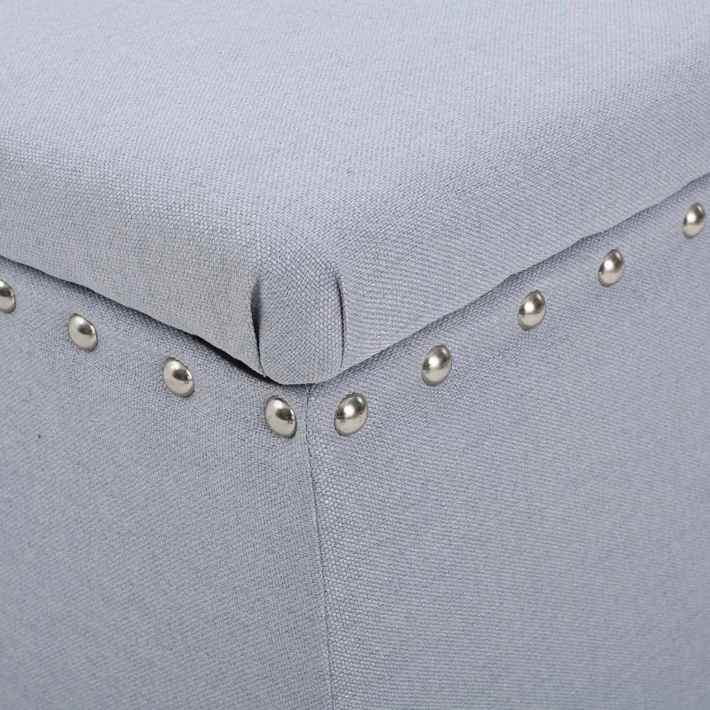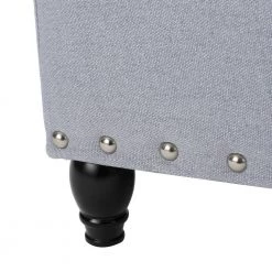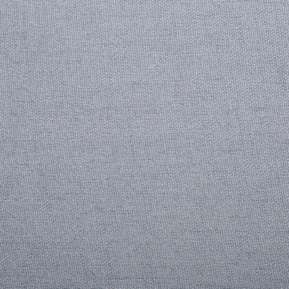 - Light gray fabric upholstery easily blends with most decor and color schemes