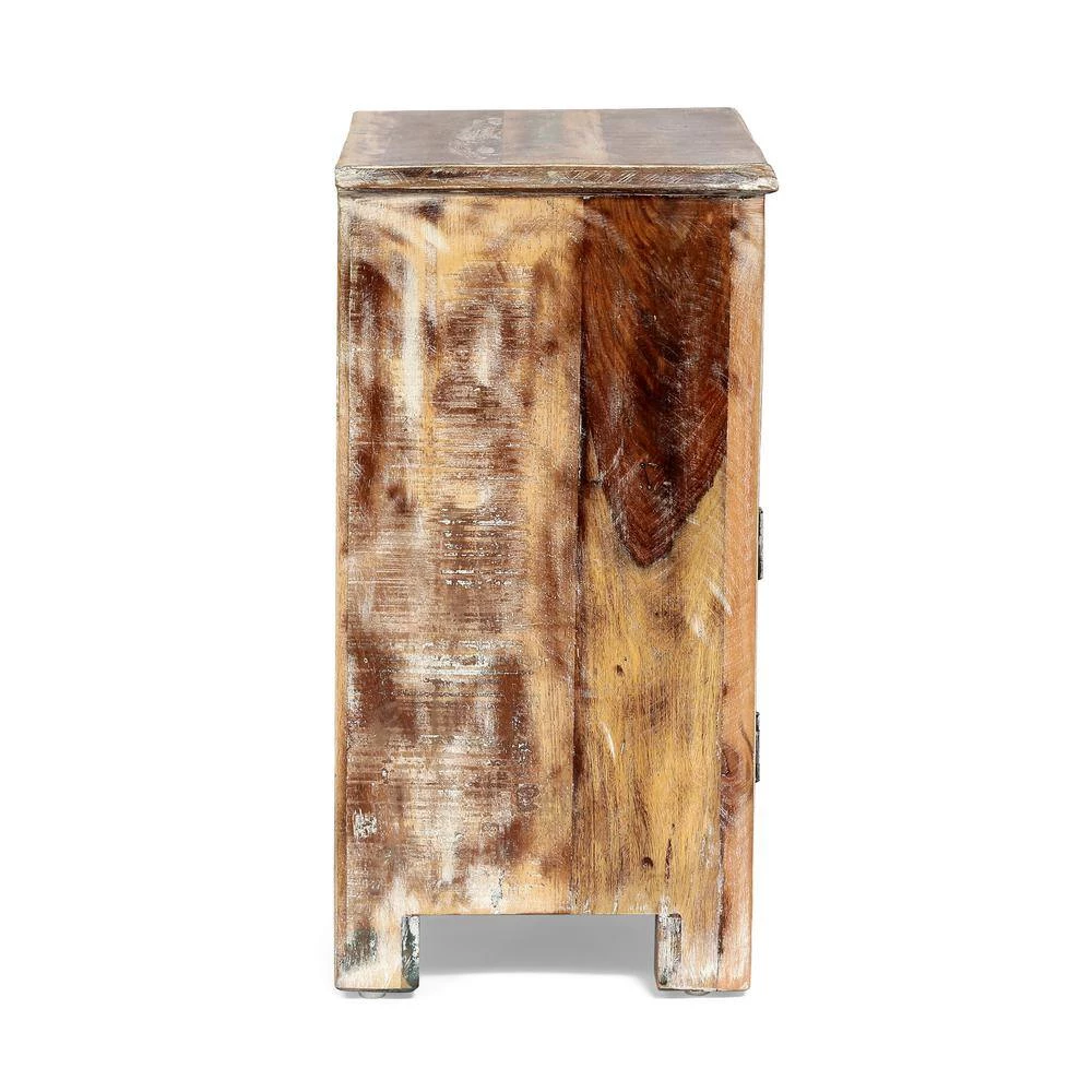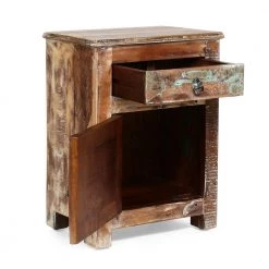 Hold your TV remotes or favorite bedtime novel with a striking accessory that is sure to give any room an effortless upgrade. With a durable wood frame and convenient storage space, our nightstand offers incredible structure and stunning looks for your interior space. This handcrafted nightstand is the perfect companion to any living space with its one drawer and cabinet space for storing and organizing your clutter. Featuring a unique distressed paint finish, this nightstand adds sophisticated grace to any bedside.