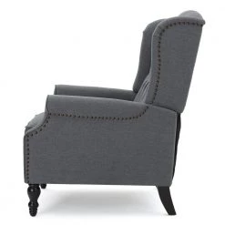 - Seat Color: Grey : Leg Finish: Dark Brown : Accent Color: Silver