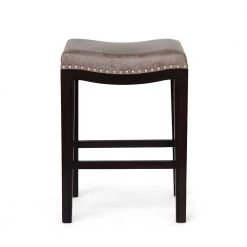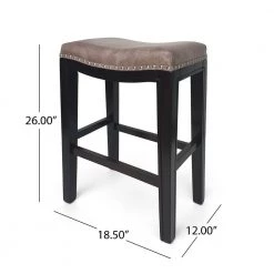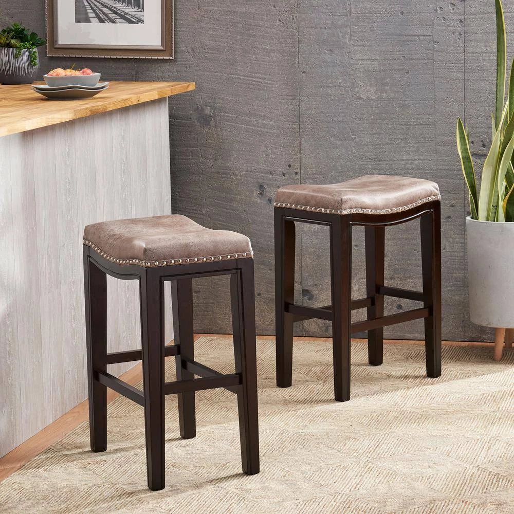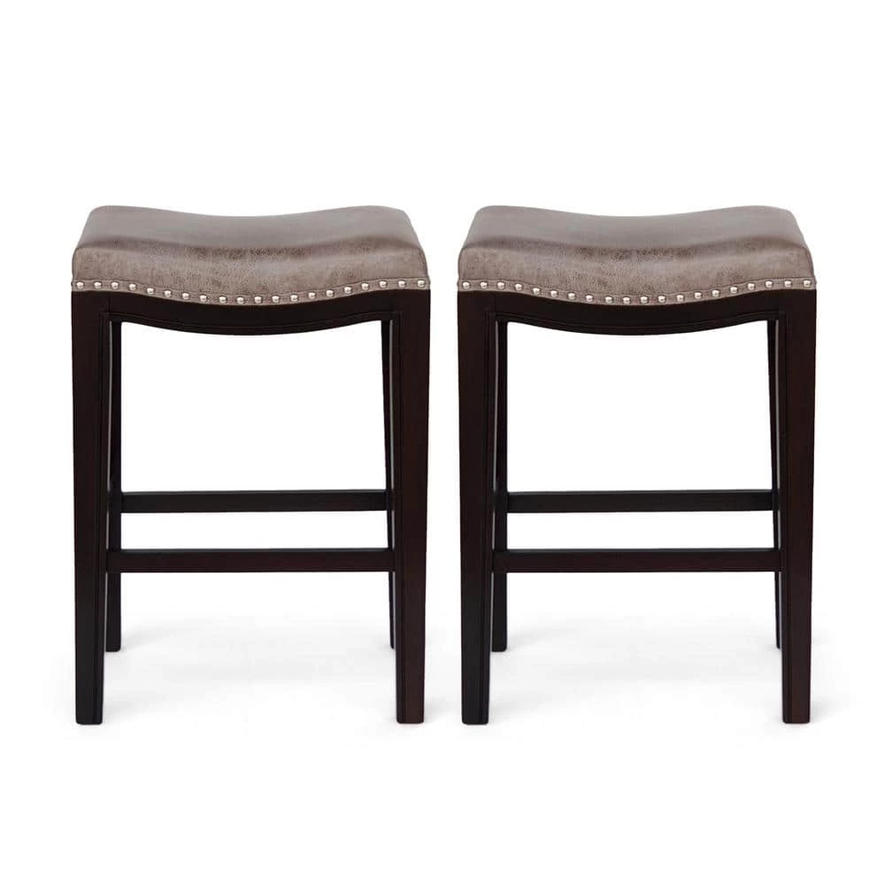 Enjoy a home cooked meal with comfortable seating in any dining setting. Featuring a sleek H-frame base and saddle seat, this set of counterstool offers a delightfully refined look to any home. These stools are finished with a stunning silver studded trim that brings an extra boost of design to your interior space. Our impeccable counterstool set is crafted from solid rubberwood, giving you and your guests a stable and reliable place to enjoy a breakfast nook or a cocktail party with friends.