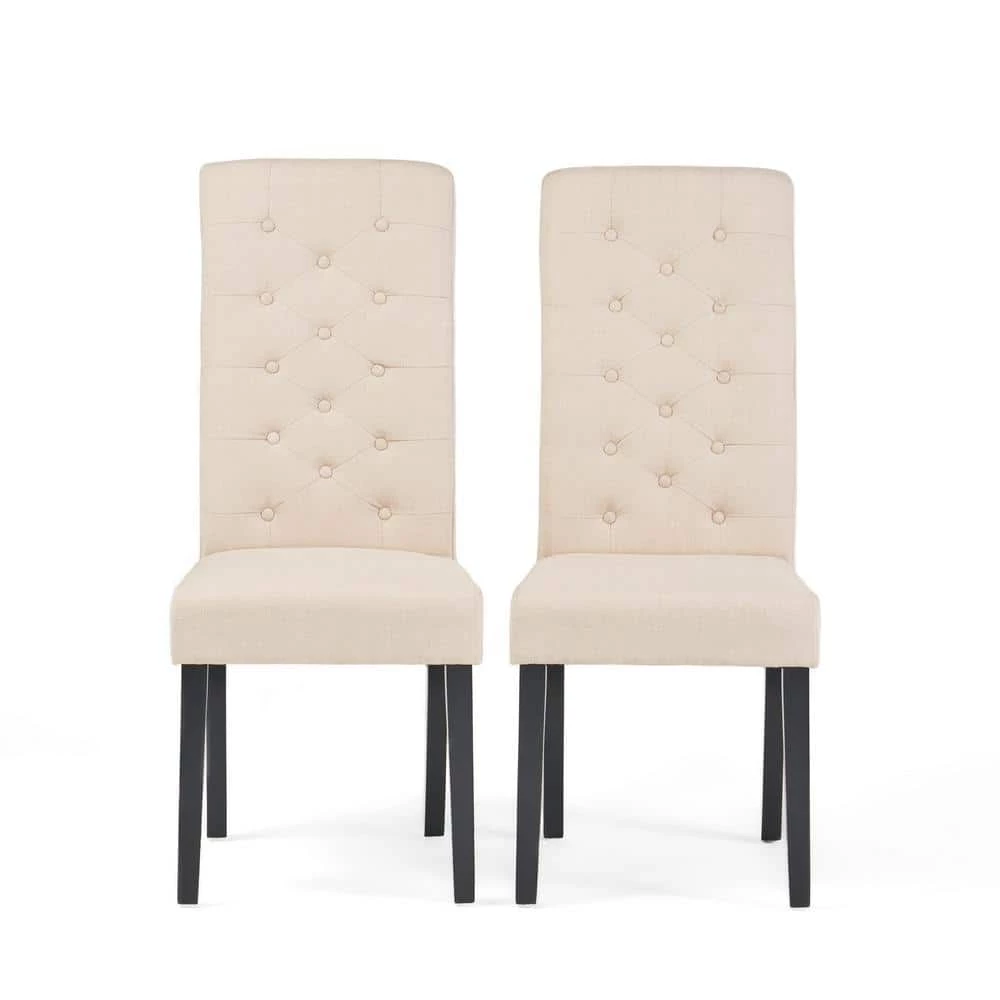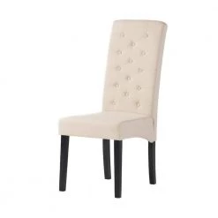 With its tall back and ample tufting, the uniqueness of this dining chair will allow you to welcome it into any room in your home. Complete with sturdy wood frame and solid wood legs, they are stability and ensure years of use. Comfortable and solidly built, they are useful in the dining room or any other room as additional seating.