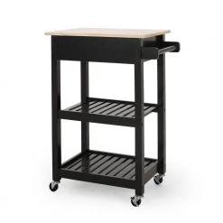 Understanding balance in your kitchen is an important asset in your home. From its open slat shelving to its incredible functionality, our kitchen cart offers ample organizational space to upgrade your living standard with a breeze. This-piece offers a stunning contemporary style and convenient design that gives you plenty of options to effortlessly and efficiently store your kitchen accessories. Crafted with sturdy wood and-rolling casters, our kitchen cart brings a fresh yet timeless look for you to utilize with ease.