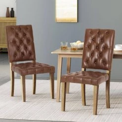 If you are looking for that classic aesthetic to help accent your dining room table, then look no further. Our dining chair set offers a sophisticated option for your meals with its deep button tufting and smooth upholstery, enhancing the chic atmosphere that surrounds them. Finished with weathered wood legs, this chair set not only offers a stunning contemporary design but also outstanding durability. Offering a breath of comfort and a touch of style, this dining chair makes it easy to host any dinner party or family get-together.