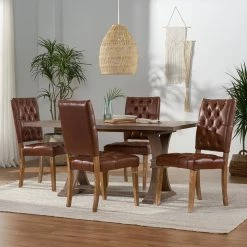 If you are looking for that classic aesthetic to help accent your dining room table, then look no further. Our dining chair set offers a sophisticated option for your meals with its deep button tufting and smooth upholstery, enhancing the chic atmosphere that surrounds them. Finished with weathered wood legs, this chair set not only offers a stunning contemporary design but also outstanding durability. Offering a breath of comfort and a touch of style, this dining chair makes it easy to host any dinner party or family get-together.
