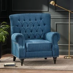 The final touches of your living room.space should be as stylish as the rest of the room. Our convenient recliner chair provides an incredibly high of leisure in an attractive package, emphasizing elegant curves and a charming contemporary design. Featuring stunning button tufted diamond stitching and classic nailhead trim, this recliner perfectly pairs style. With its push-back functionality, allowing for ultimate comfort with little effort. Sure to become the new favorite spot of leisure, this recliner is something you and your family will surely enjoy.