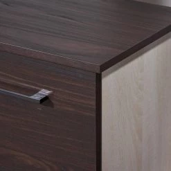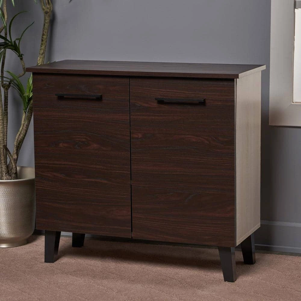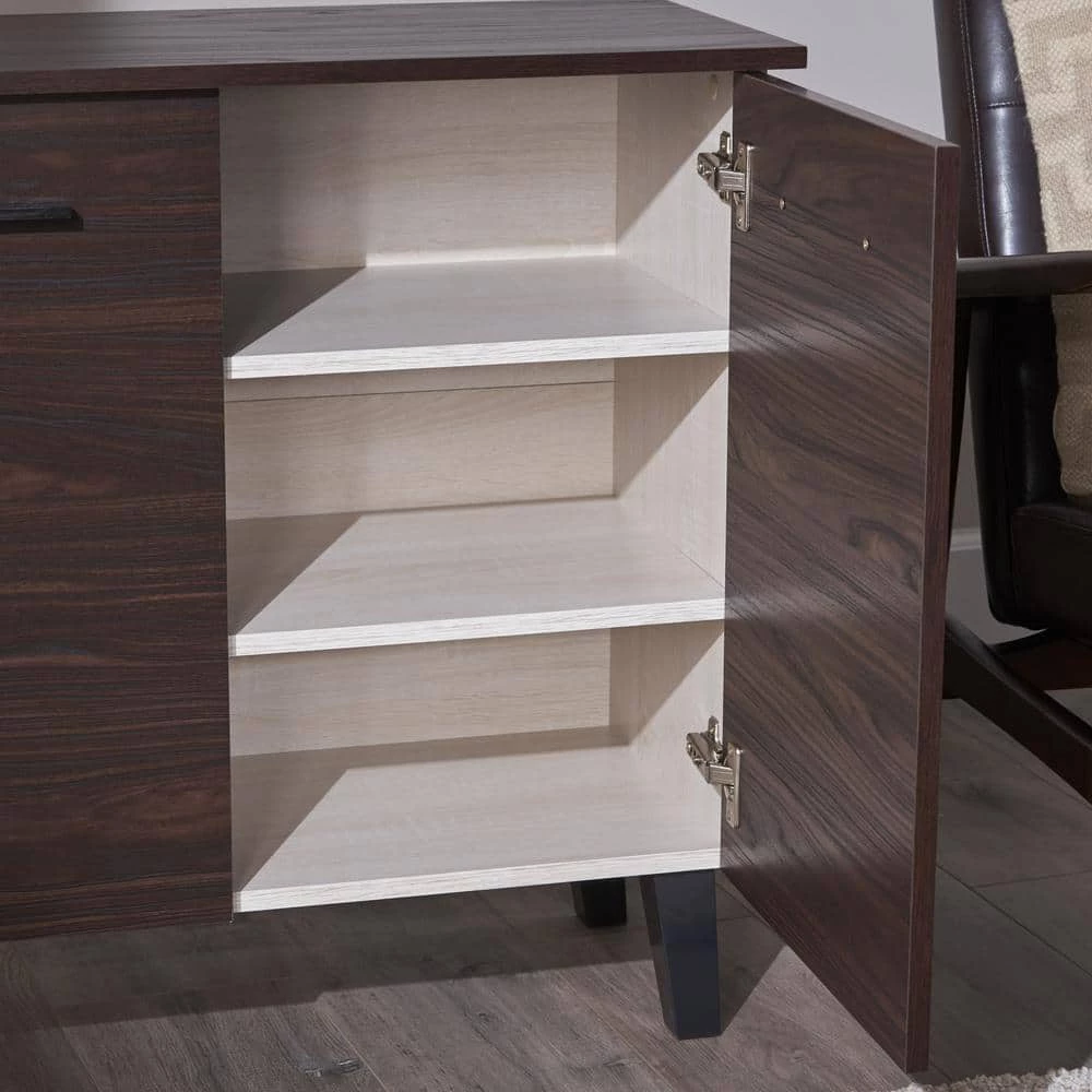 This cabinet features 3 interior shelves and a rectangular open top, offering stylish and convenient storage and display space for homes. With a two-tone finish of walnut brown for the main body and sonoma oak for the interior, this cabinet is sure to bring warm, earthy tones to your living space. Use this cabinet in any part of your house for enhanced style and functionality.