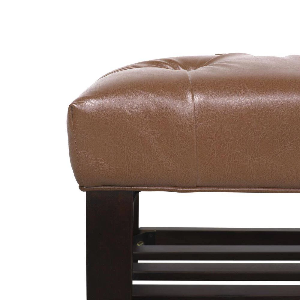 Turn your entryway into a trendy space or upgrade the end of your bed with some extra seating. Our delightful bench brings a sophisticated contemporary aesthetic to any space with its plush, button-tufted, diamond stitched top and rich birch wood frame. Featuring an open bottom shelf with a beautiful slat panel design, this ottoman bench is ideal for adding extra seating to any room. This refined statement piece not only offers excellent style but also provides outstanding comfort for you and your guests to admire.