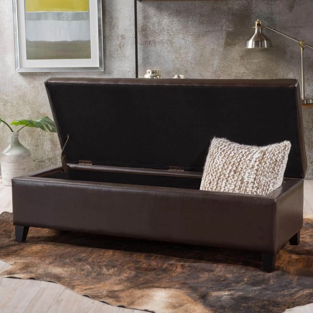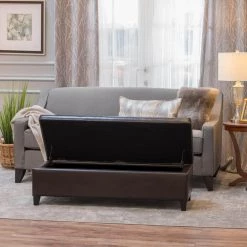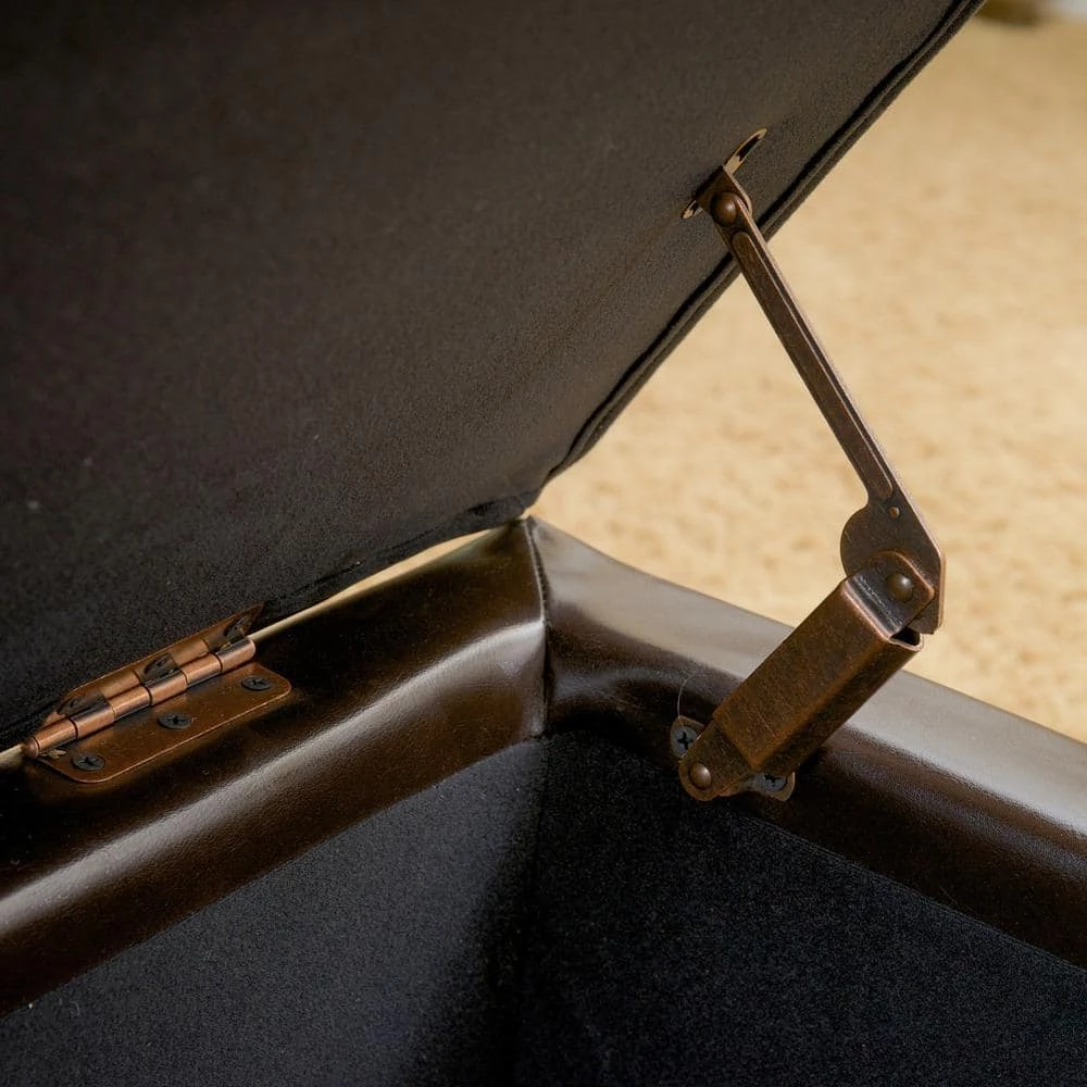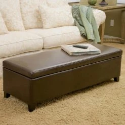 Tired of looking for just the right ottoman for a large room, or for placement in front of a large sofa, only to never find one that has both the size and the style you need? Allow us to introduce the york leather storage bench. The york ottoman bench is an ideal solution for your storage needs. This beautiful piece is upholstered with bonded leather that is neutral in color to complement any room that it’s placed in. The top is actually a leather-adorned lid that can be easily opened to reveal a storage compartment. Use this bench for storing throws and extra pillows, or other items to keep any area of your home clutter-free.