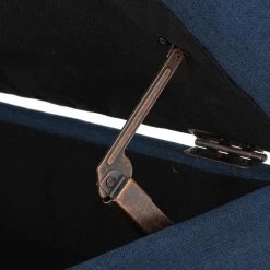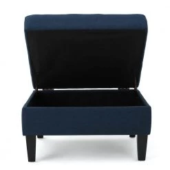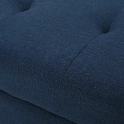 - Dark blue fabric upholstery adds a cool pop of color to rooms and spaces